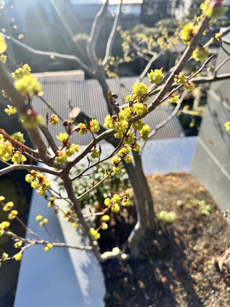庭木のアブラチャンが開花した😀
